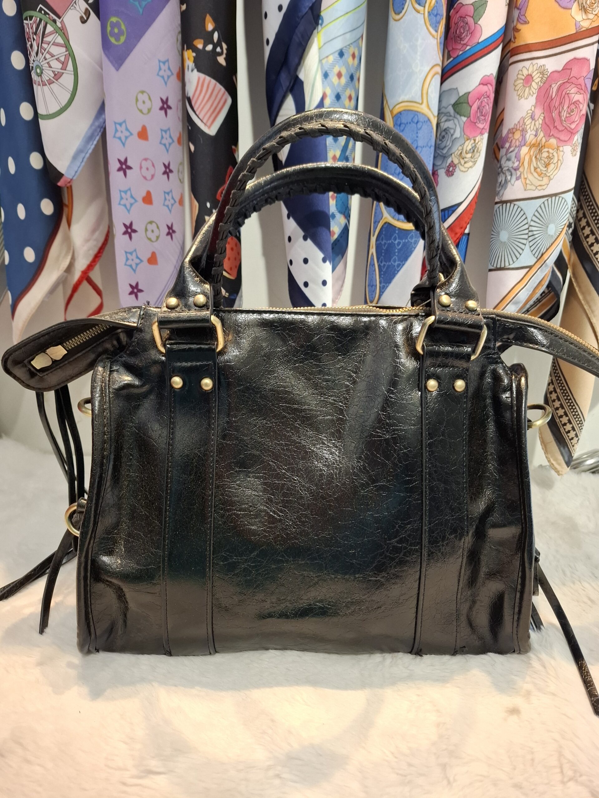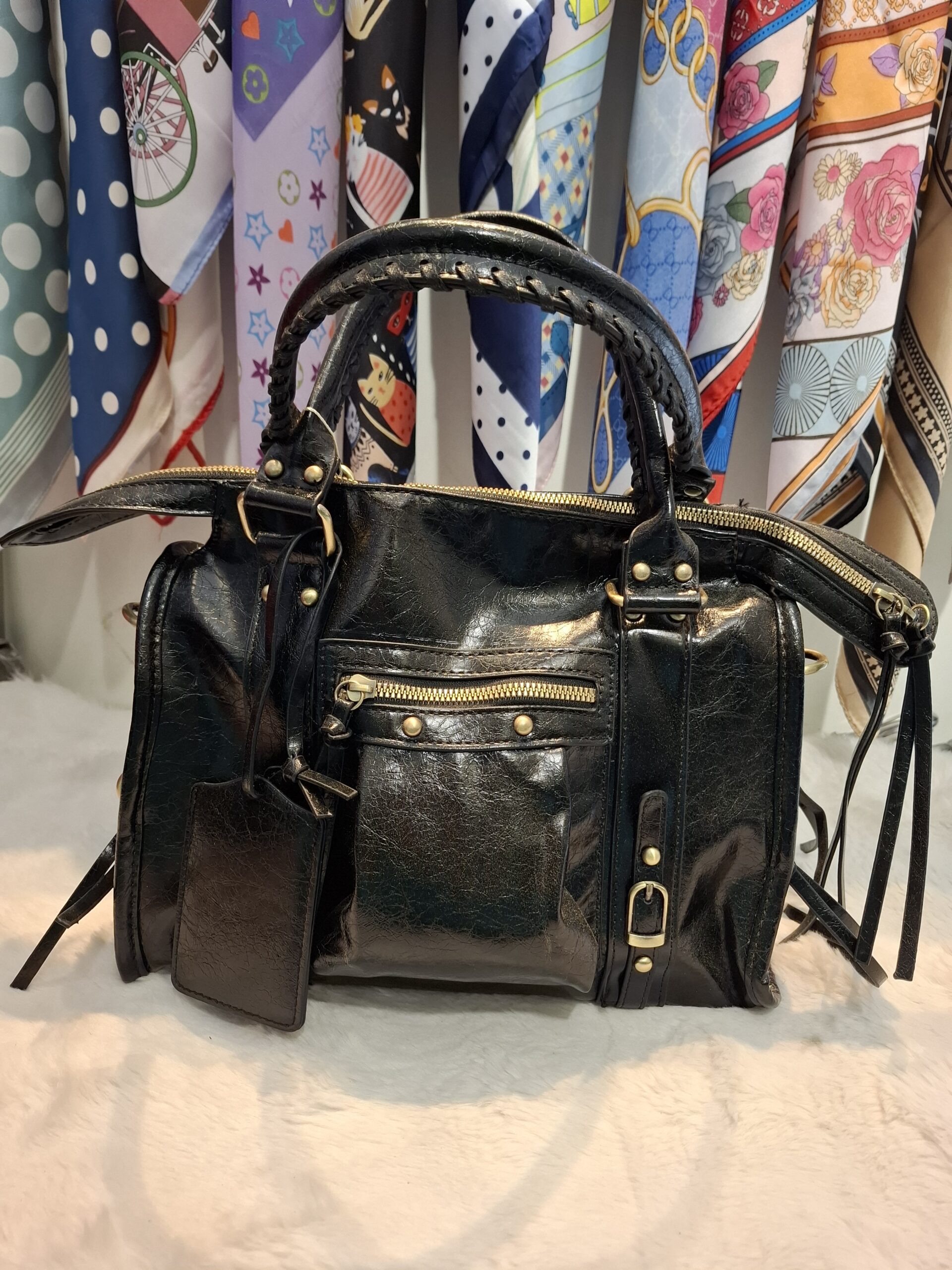 Ženska crna torba sa zlatnim prstenima