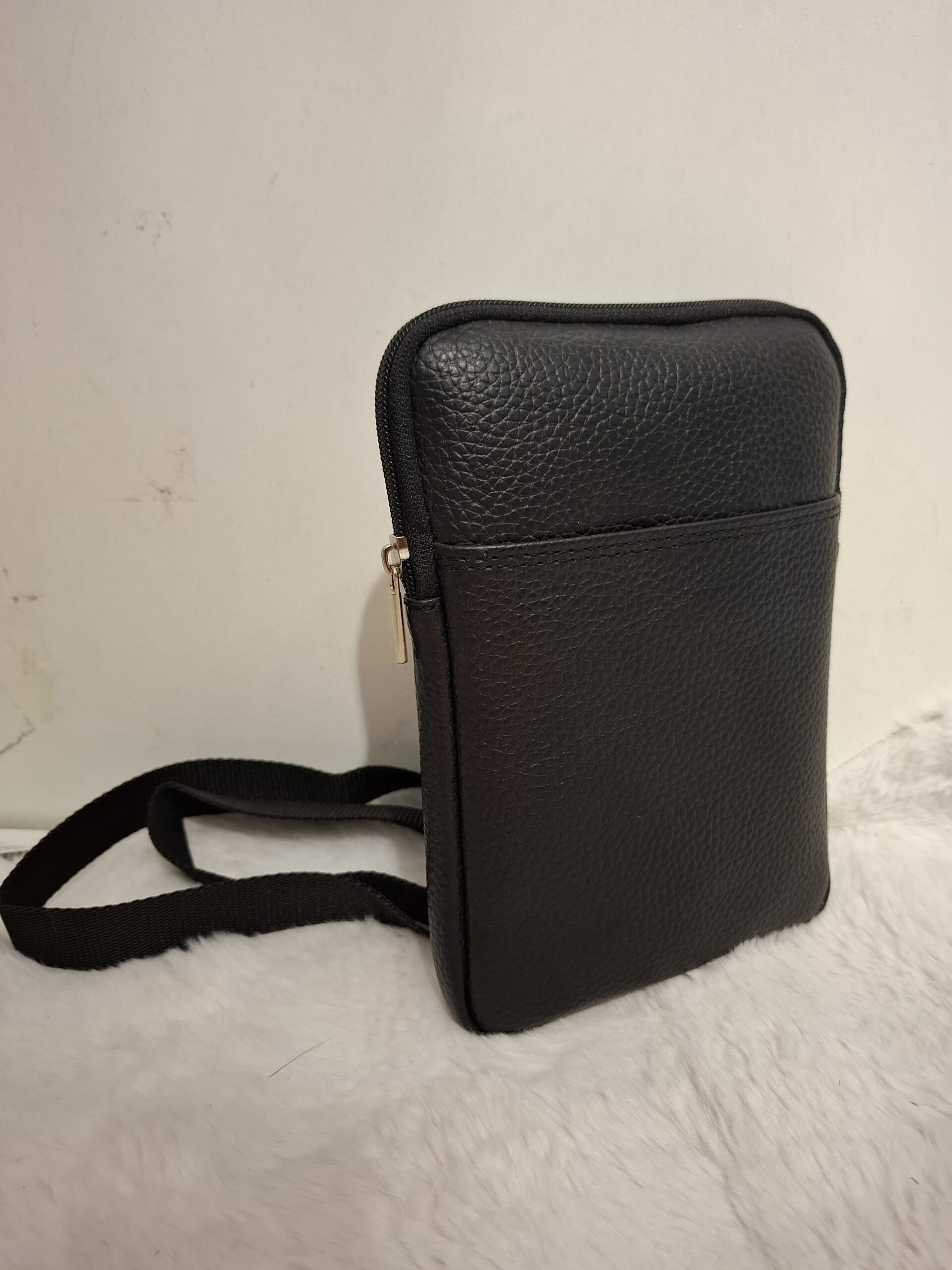 Ova torba izrađena je od fine meke kože.Nosi se na rame pomoću duge ručke na regulaciju.Sa prednje strane torbe nalazi se zip džepa te jedan sa stražnje strane.