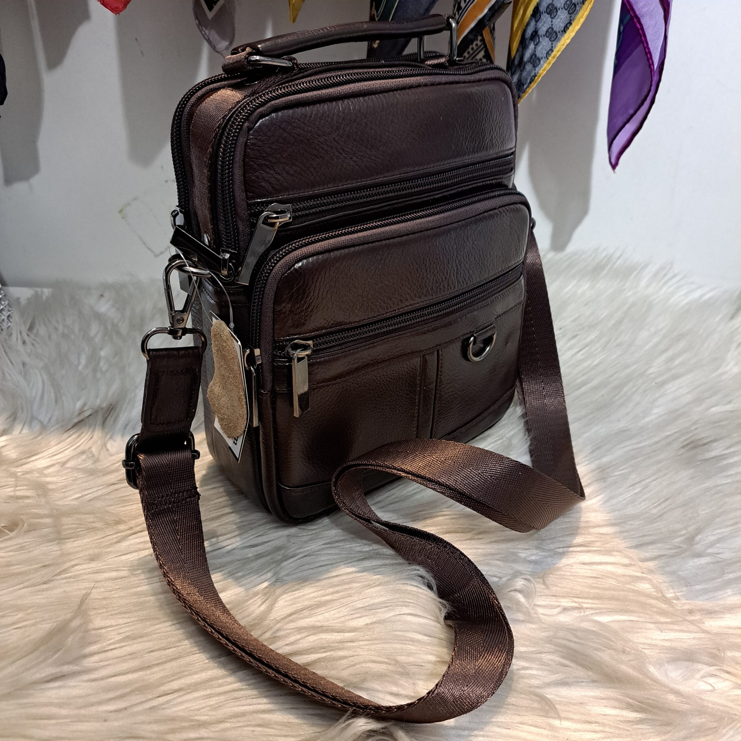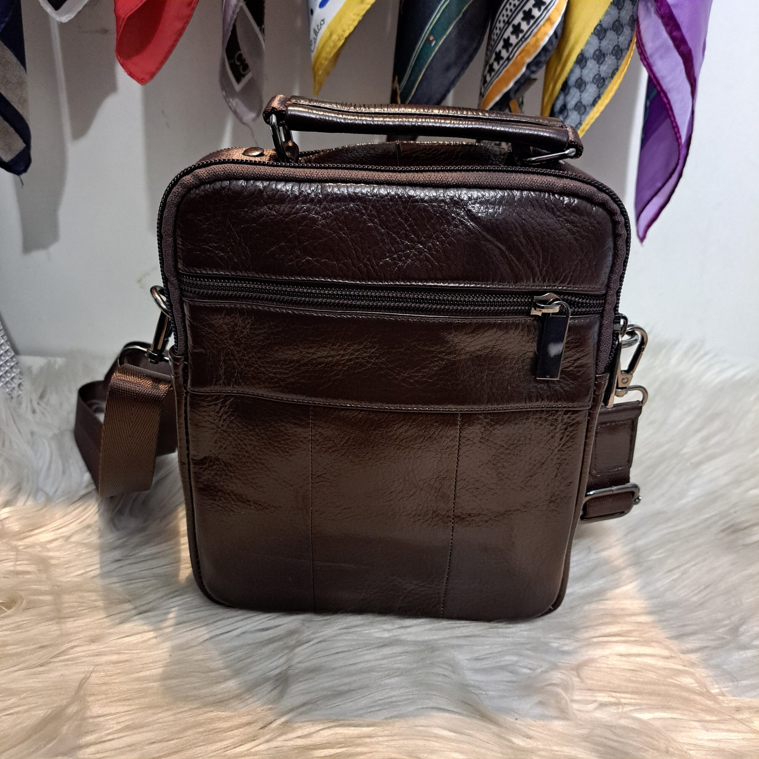Početna TORBE Muške torbe Muška smeđa kožna torba 20x23x9#1155