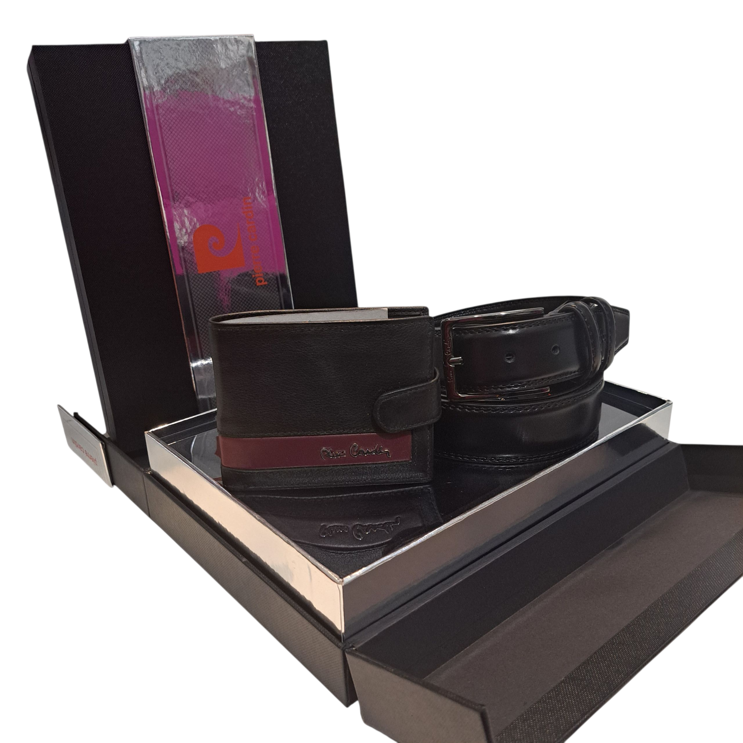 Muški poklon set sadrži kožni novčanik i remen.